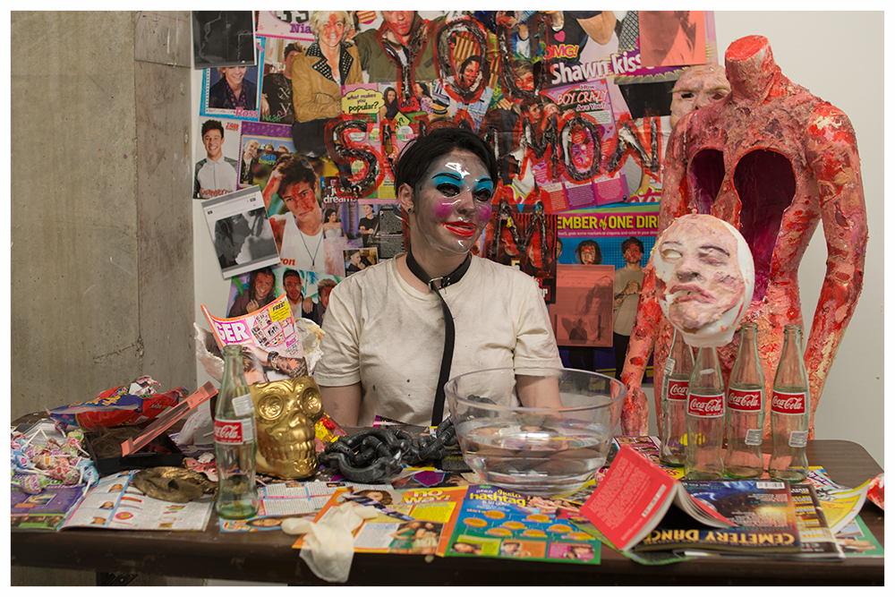 "An artist who is trying to hold themself and objects together, repeatedly, physically. A way to feel comfortable with extensive cross-referencing, poetic mumbles and frantic bodies, A guide to how an artist can make meaning to build their own world. "